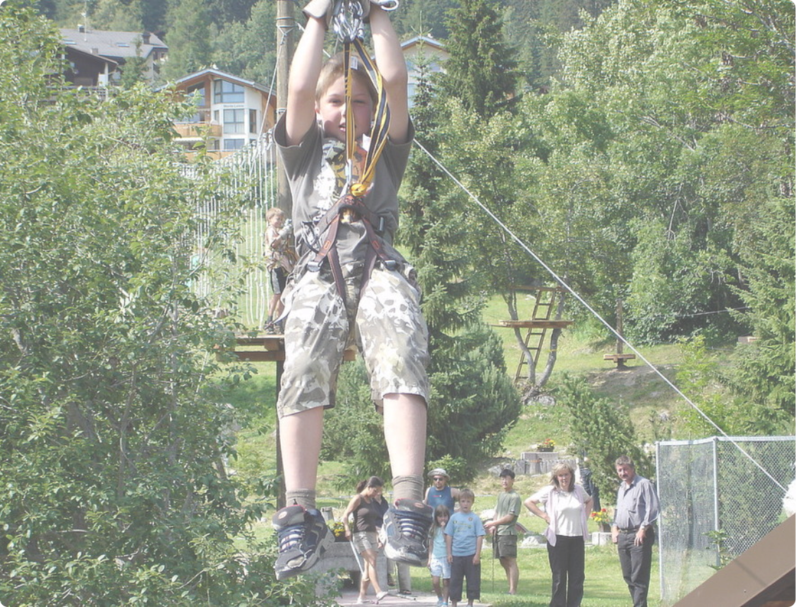 sie begleitet.Mit 5 Tyrolienns ist